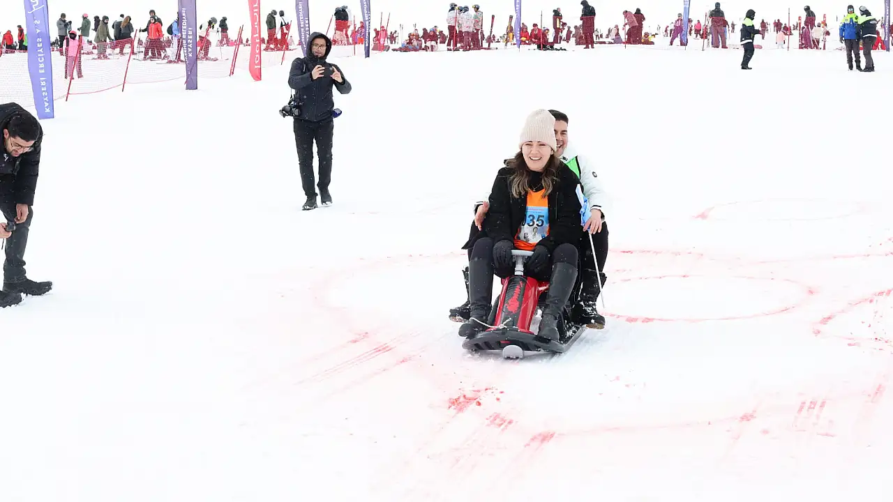 Erciyes A.Ş. tarafından Tekir Kapı bölgesinde gerçekleştirilen etkinliğe 13 çift katıldı. Erkekler, kızağa binen eşlerini eğimli pistte yukarı doğru çekmeye çalıştı. En üst noktadaki bayrağı alan çiftler, ardından birlikte kayarak başlangıç noktasına indi.