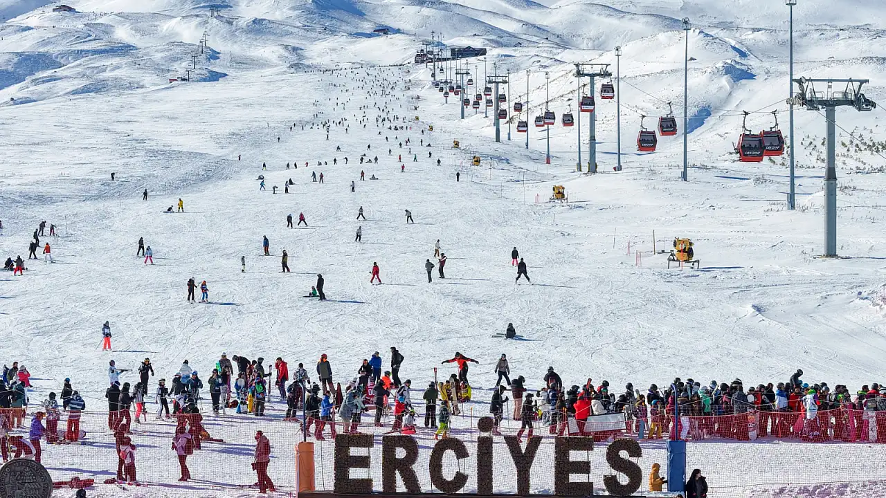 Türkiye'nin önemli kış turizm merkezlerinden Erciyes Kayak Merkezi'nde hafta sonu ziyaretçi yoğunluğu yaşandı.