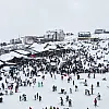 Aileleriyle birlikte gelen ziyaretçiler kızak alanlarında vakit geçirirken, oluşan yoğunluk havadan drone ile görüntülendi.