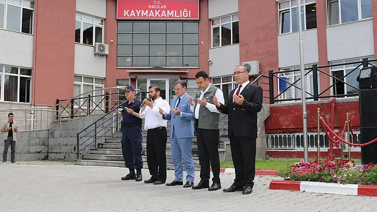 Hacılar Kaymakamlığı önünde gerçekleştirilen ve Kaymakam Haluk Sezen, Belediye Başkanı Bilal Özdoğan, İlçe Jandarma Komutanı Muhittin Doğan, İlçe emniyet Müdürü Osman Öztürk, Daire Müdürleri ile vatandaşların katıldığı dua öncesinde bir konuşma yapan Kaym
