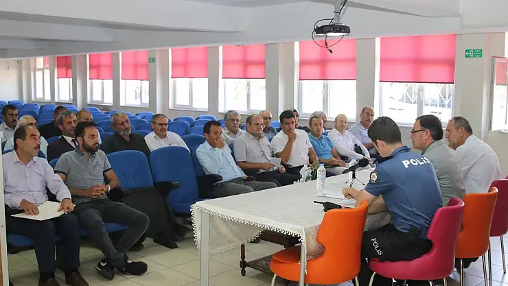 Gürdoğanlar Ortaokulunda gerçekleştirilen toplantıya, Belediye Başkanı Bilal Özdoğan, İlçe Jandarma Komutanı Muhittin Doğan, kurum amirleri, muhtarlar ve vatandaşlar katıldı.