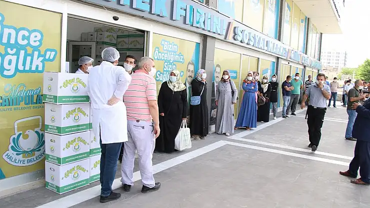 Gıda desteği almak için Haliliye Belediyesi Sosyal Yardım tesisine gelen hasta ve hasta yakınlarına