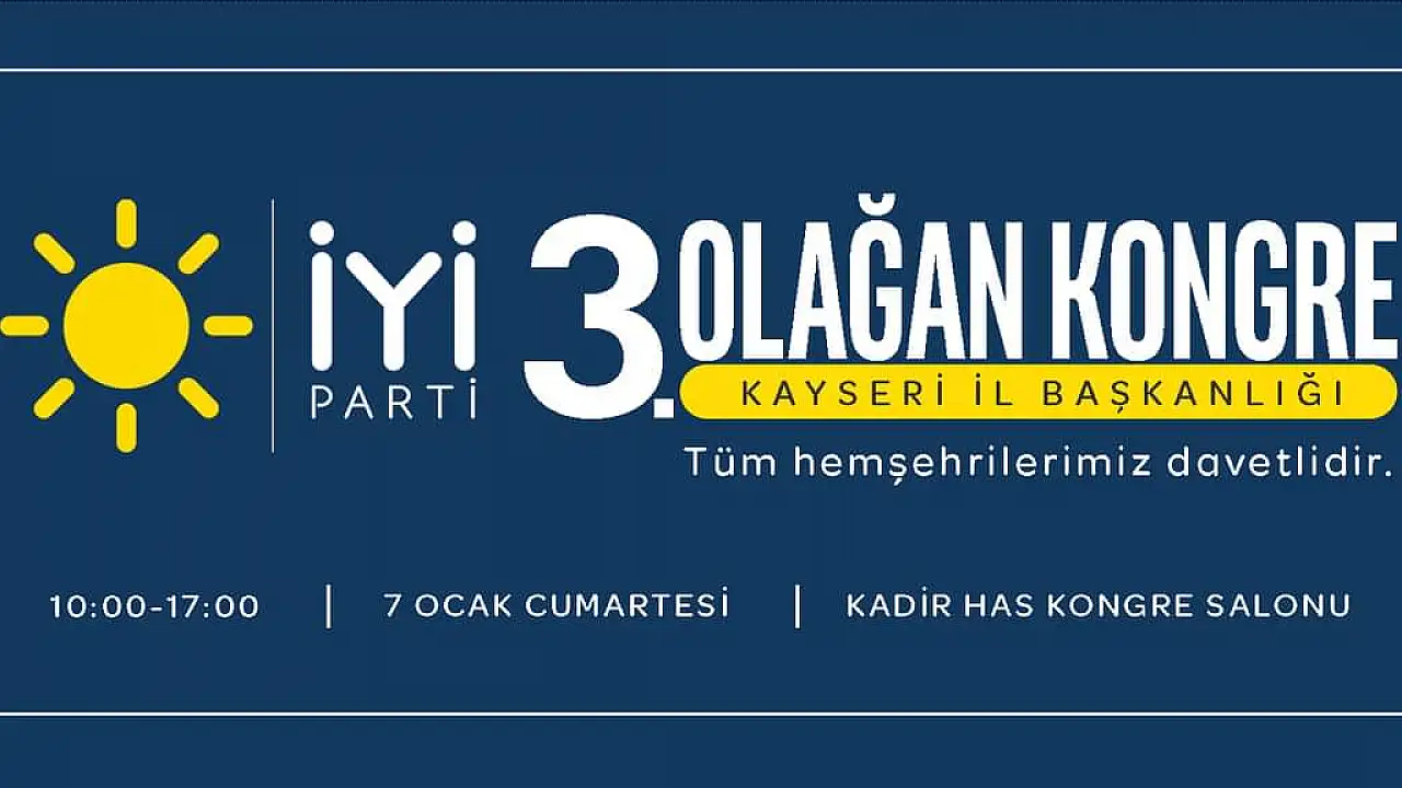Partiden yapılan açıklamada '' Değerli partililerimiz İYİ Parti Kayseri İl Başkanlığı 3.Olağan Kongremiz 7 Ocak Cumartesi günü saat 10:00-17:00 arası Kadir Has Kongre Salonunda yapılacaktır.