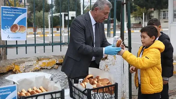 Güzelbahçe Belediye Başkanı Mustafa Günay, ara tatilden dönen öğrencileri okul önünde süt ve poğaça ile karşıladı.Yeni bir uygulama başlatan belediye, Güzelbahçe'deki 5 devlet okulunun öğrencilerine her sabah süt ve poğaça dağıtacak.