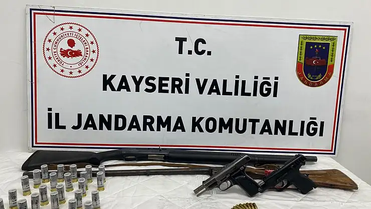 Kayseri İl Jandarma Komutanlığı ekipleri kentte güvenliği sağlamak amacıyla çalışmalara devam ediyor. Bu kapsamda Pınarbaşı İlçe Jandarma Komutanlığı ekiplerince, sorumluluk bölgesinde bulunan Karakuyu Mahallesinde ikamet eden B.K. isimli şahsın evine operasyon düzenlendi. Yapılan aramada 1 ruhsatsız tabanca, 1 kurusıkı tabanca, 2 ruhsatsız av tüfeği, 29 adet 9 milimetre çapında tabanca fişeği ve 23 av tüfeği fişeği ele geçirildi.