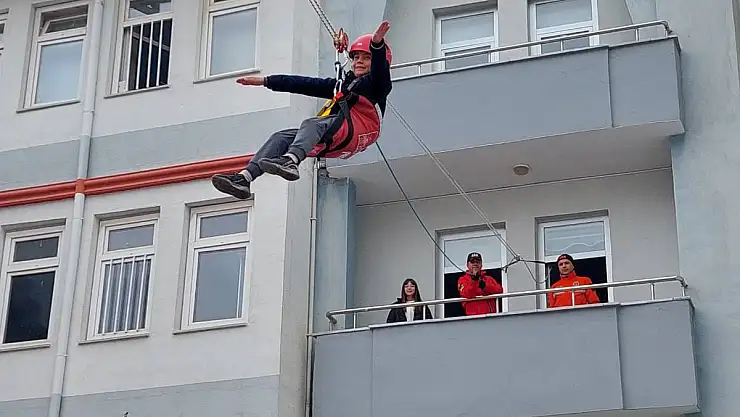 Kayseri'de jandarma ekiplerince öğrenci ve öğretmenlere 'Deprem Anı Tahliye ve Yangın Söndürme Tatbikatı' yapıldı.Öte yandan arama kurtarma köpeği ile gösteri yapıldı.