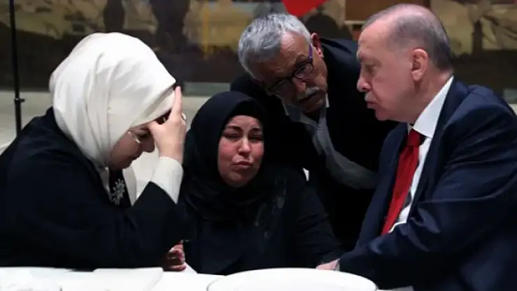 Cumhurbaşkanı Recep Tayyip Erdoğan ve eşi Emine Erdoğan, Cumhurbaşkanlığı Dolmabahçe Ofisi'nde şiddet mağduru kadınların yakınlarıyla iftarda bir araya geldi.Konuşmasında tüm şiddet mağduru kadınlara Allah'tan rahmet dileyen Cumhurbaşkanı Erdoğan, hayatın