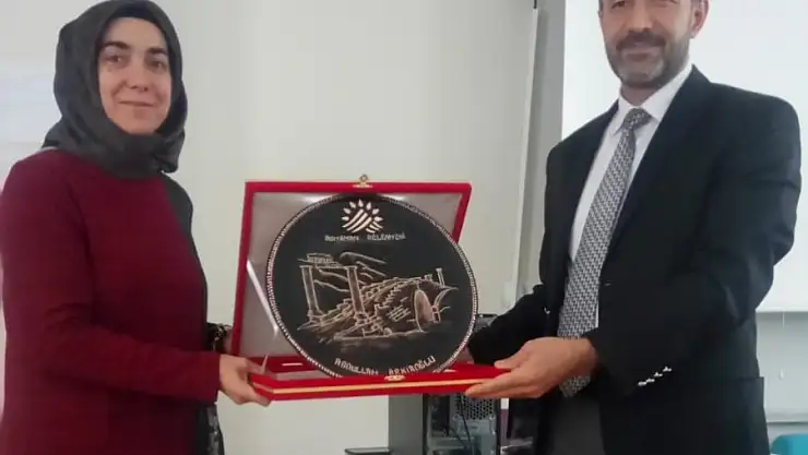 Seminer sonunda Adıyaman Belediyesi Kadın ve Gençlik Merkezi Koordinatörü Yasemin Delibaş, konuşmacı olarak programa katılan İl Müftü Yardımcısı Abdullah Bekiroğlu’na, kursiyerler tarafından kendi adına hazırlanan el yapımı çini hediye etti.