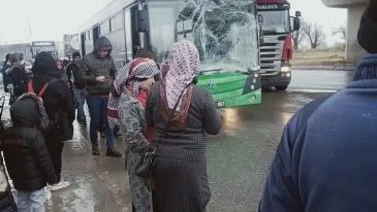 Kaza, Kocasinan ilçesine bağlı Muhsin Yazıcıoğlu Bulvarı Kuzey Çevre Yolu alt geçidinde meydana geldi. Henüz bilinmeyen bir nedenle halk otobüsü ile kamyon çarpıştı. Kazada otobüs şoförü Ç.K. (38) ve yolculardan K.B. (54) hafif şekilde yaralandı.