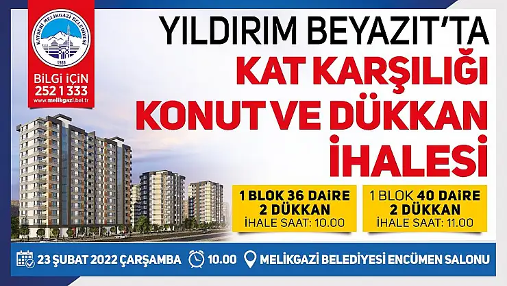 Melikgazi Belediyesi olarak Yıldırım Beyazı Mahallesi’nin cazibe merkezi haline gelmesi için çalıştıklarını söyleyen Başkan Dr. Mustafa Palancıoğlu, “Yıldırım Beyazıt Mahallesi'nde fiziki ömrünü tamamlamış yapıların yıkılarak, daha modern ve yaşanabilir konutların inşa edilmesine yönelik devam eden kentsel dönüşüm projeleri kapsamında çalışmalarımız devam ediyor. Yıldırım Beyazıt Mahallesi’nde kat karşılığı konut ve dükkân ihalemizi 23 Şubat Çarşamba günü saat 10.00’da düzenleyeceğiz. 1 blok 36 daire 2 dükkânın ihalesi saat 10.00’da, 1 blok 40 daire 2 dükkânın ihalesi ise saat 11.00’de yapılacak. Belediyemiz hizmet binasındaki Encümen Salonu’nda yapılacak olan ihalemizin şartnamesiyle ilgili detaylı bilgilerine www.melikgazi.bel.tr adresinden ulaşabilirsiniz. Yıldırım Beyazıt kentsel dönüşüm çalışmalarımız ile yeşil alanlarıyla, sosyal tesisleriyle herkesin hayalini kurduğu bir yaşam yeri olacak. İlçemizin daha da güzelleşmesi için kentsel dönüşüm en önemli çalışmalarımızdan biri. İhalemize katılmak isteyen müteahhit firmalarımızı bekleriz.” dedi.
