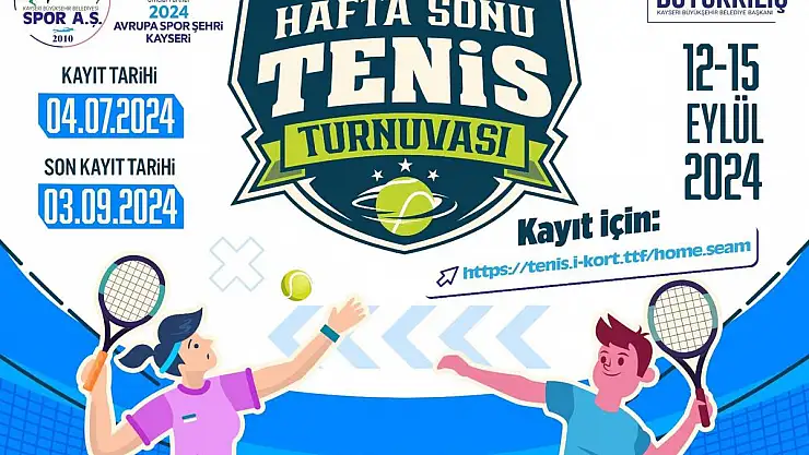 Kayseri Büyükşehir Belediyesi Spor A.Ş. 12-15 Eylül tarihlerinde düzenlenecek Ulusal 12 Yaş Hafta Sonu Tenis Turnuvası’na ev sahipliği yapacak. 2024 Avrupa Spor Şehri Kayseri’de düzenlenecek turnuva Recep Tayyip Erdoğan Millet Bahçesi Tenis Kortlarında lisanslı sporcular arasında gerçekleşecek.