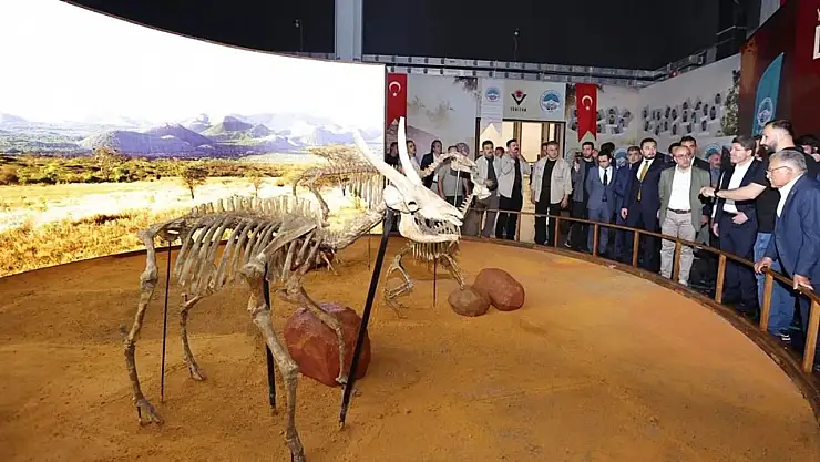 Başkan Dr. Memduh Büyükkılıç, Adalet Bakanı Yılmaz Tunç ve beraberindeki heyete Kültepe Ziyaretçi Merkezi'ni tanıtarak 7,5 milyon yıllık fosiller sergisini gezdirdi.
