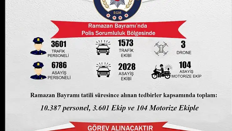 Ramazan Bayramı'nda Kayseri'de 13 bin 601 personel görev alacak. Polis, trafik, asayiş ve motorize ekiplerinin yanı sıra drone da kullanılacak.