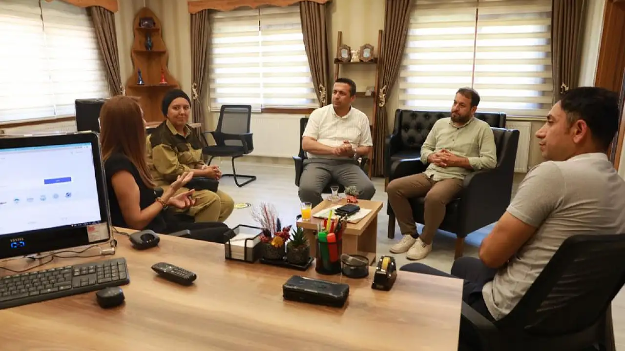 TOBB Kayseri Kadın Girişimciler Kurulu Başkanı Tuğba İlgü ve TOBB Kayseri Kadın Girişimciler Kurulu Başkan Yardımcısı Emel Kuşçuluoğlu Kayseri Kariyer Merkezi’ni ziyaretinde Büyükşehir Belediyesi İşletmeler ve İştirakler Daire Başkanı Cenani Ayaydın, Kayseri Mesleki Eğitim ve Kültür A.Ş. (KAYMEK) Genel Müdürü Denizhan Burhan Çanakpınar ve Kariyer Merkezi sorumlusu Kenan Tosun da yer aldı.