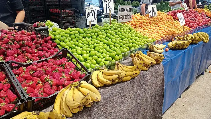 Çilek 25 lira ve 20 lira arası, muz 30 lira ile 27,5 lira arası, salatalık 15 lira ile 10 lira arası, salkım domates 10 lira ile 12,5 lira arası, kabak 17,5 lira ile 15 lira arası, patlıcan 12,5 lira ile 10 lira arası, patates 15 lira ile 12,5 lira arası, soğan 12,5 ile 10 lira arası, biber 15 lira ile 12,5 lira, sarımsak 25 lira ile 20 lira arası, mantar 50 ile 30 lira arası, yeşil fasulye 20 lira ile 15 lira arası, limon 20 lira ile 15 lira arası, elma 17,5 lira ile 12,5 lira arası, erik 35 lira ile 30 lira arası, yeni dünya 40 lira ile 15 lira arası, kayısı 25 lira ile 15 lira arası, kiraz 40 ila 15 lira arası, yeşil soğan 5 ila 10 lira arası değişen fiyatlarla alıcı buluyor.