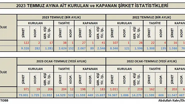 Kayseri’de kurulan şirket sayısı, temmuzda bir önceki yılın aynı ayına göre yüzde 14 artarken, kapanan şirket sayısı da yüzde 68,75 arttı.