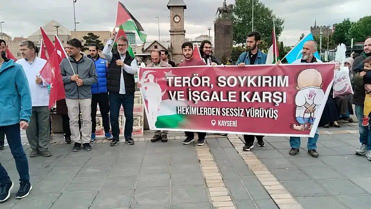 Kayseri'de sağlık çalışanları ve tıp fakültesi öğrencileri, İsrail'in Gazze'ye yönelik soykırımına tepki amacıyla sessiz yürüyüş gerçekleştirdi.Kayseri Büyükşehir Belediyesi önünden başlayan yürüyüş Cumhuriyet Meydanı'nda bulunan Filistin çadırında son bu