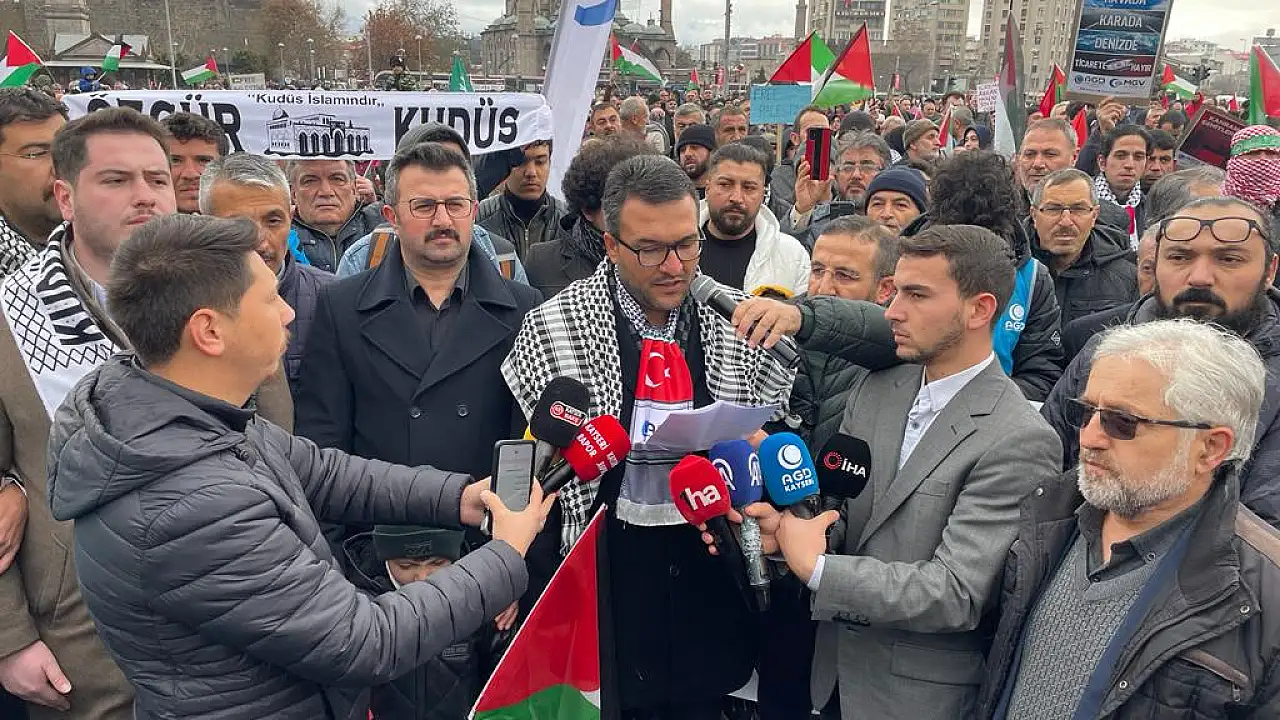 Anadolu Gençlik Derneği (AGD) Kayseri şubesi öncülüğünde ‘Büyük Filistin Yürüyüşü’ Bürüngüz Camii önünden başlayarak Kayseri Valiliği önünde son buldu. Yürüyüş sonrası açıklama yapan AGD Kayseri Şube Başkanı Yusuf Şahin, “İsrail bu şımarıklığını, İslam ülkelerinin ve Müslümanların sessizliğinden almaktadır. Ey İslam ülkelerinin idarecileri hiçbir şey yapamıyorsanız, bari havadan, karadan ve denizden kendi ülkelerinizin limanlarından terörist İsrail'e yaptığınız ticarete bir son verin” dedi.