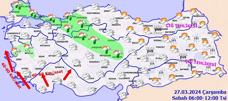 Meteoroloji Genel Müdürlüğü 27 Mart Çarşamba gününe ilişkin hava tahmin raporunu yayımladı.