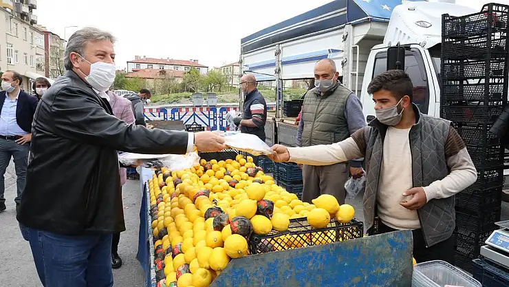 Melikgazi Belediye Başkanı Dr. Mustafa Palancıoğlu, Melikgazi Belediyesi'nin korona virüs ile mücadele konusunda önemli çalışmalara imza attığını söyleyerek pazar esnafına özel siperli maske dağıttı.