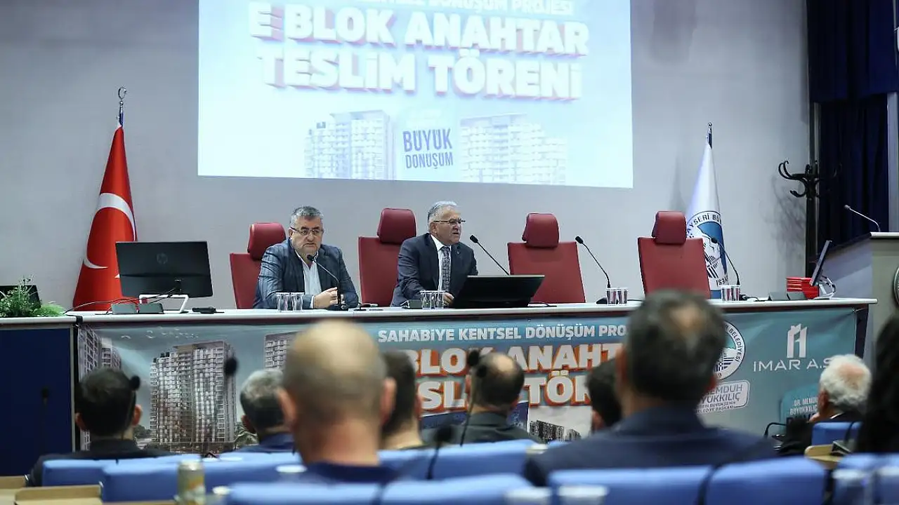 Sahabiye Kentsel Dönüşüm Projesi E Blok Anahtar Teslim Töreni'nde konuşan Başkan Büyükkılıç, 'Biz eser bırakan, iz bırakan anlayışı içerisinde çalışmalarımızı yapmaya devam ediyoruz.Sahabiye projesi etap etap hayata geçiriliyor' dedi.