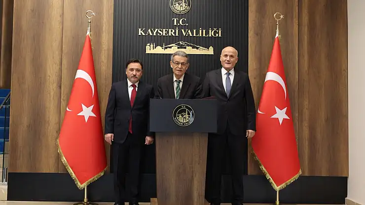 Tarım ve Köyişleri Eski Bakanı Sami Güçlü ile Merkez Valisi Mevlüt Bilici, Kayseri Valisi Gökmen Çiçek'i makamında ziyaret etti.