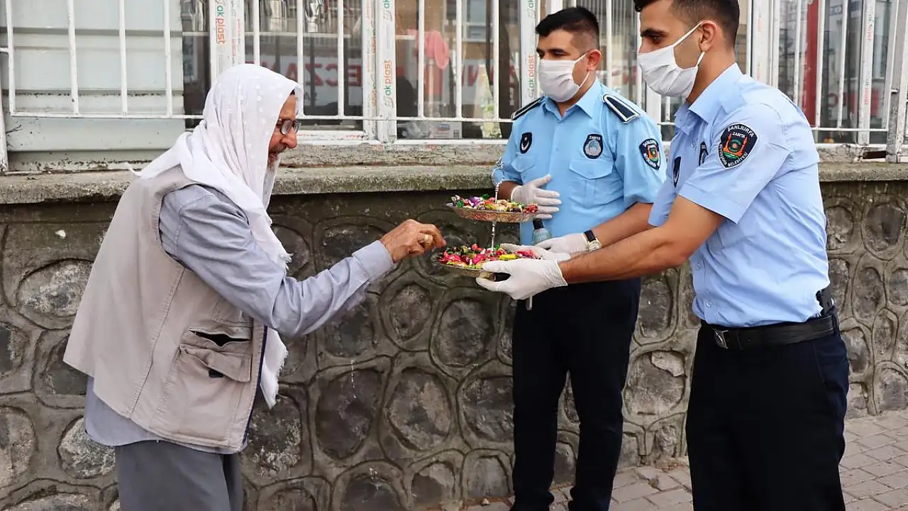 Zabıta ekipleri, 65 yaş ve üzeri vatandaşlara şeker ve kolonya ikramında bulundu.