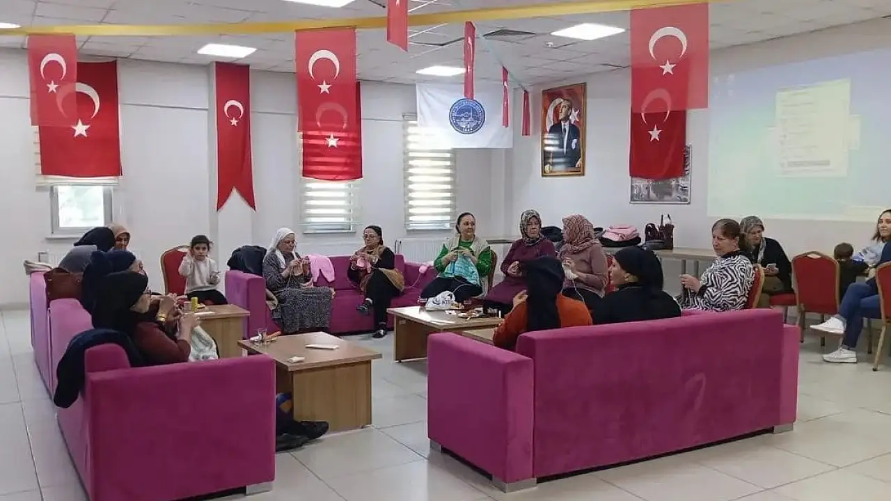 Kayseri'nin Sarıoğlan ilçesindeki KAYMEK Sosyal Yaşam Merkezi'nde kadınlara yönelik 'Örgü ve motivasyon günü' etkinliği düzenlendi.
