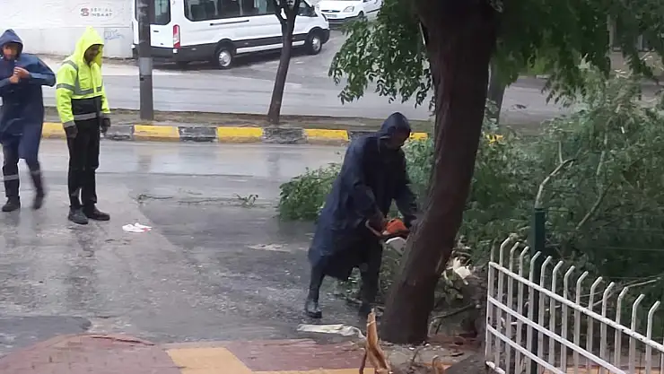 Yaşanan şiddetli yağış ve rüzgâr nedeniyle teyakkuz halinde olan Büyükşehir ekipleri, birçok yerde devrilen
