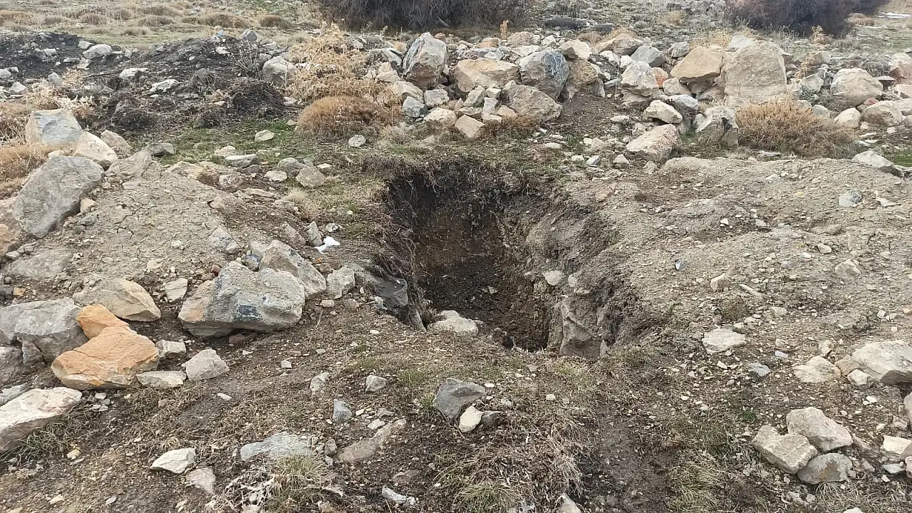 Kayseri'nin Yahyalı ilçesine bağlı Soğulcak Yaylası'nda karların erimesiyle birlikte kaçak kazılar gün yüzüne çıktı.