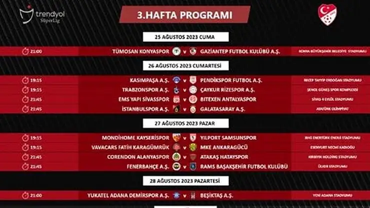 Süper Ligin 3 ve 4'üncü hafta programı yayınlandı