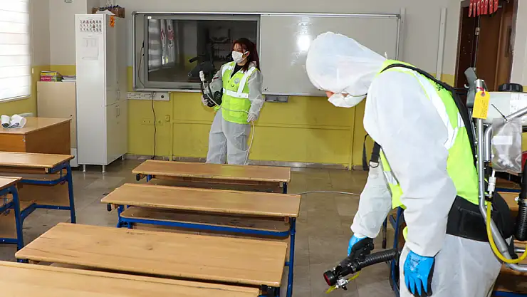 öğrencilerin temas edeceği yerler hijyenik hale getiriliyor. Ayrıca muhtemel haşerata karşı da