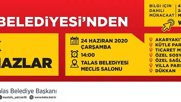 2420 numaralı telefonlarından ve www.talas.bel.tr adresinden bilgi almak mümkün olacak.