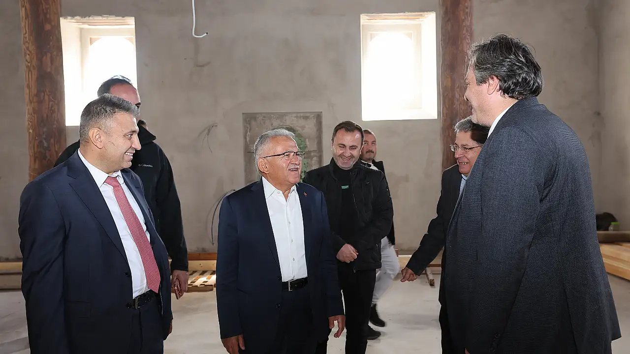 Başkan Büyükkılıç, Melikgazi'deki Tasmakıran Camii restorasyon çalışmalarını yerinde inceledi projenin Ramazan ayına kadar tamamlanması hedefleniyor.