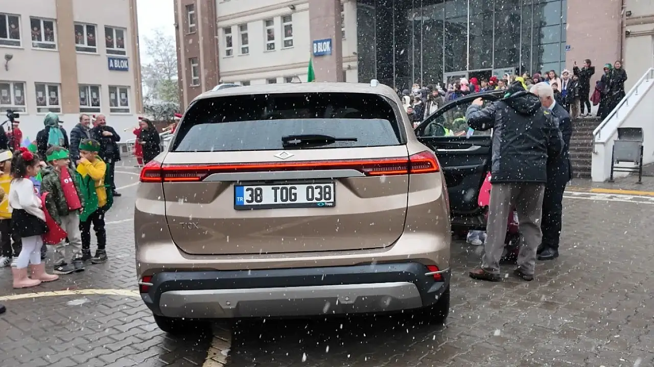 Kayseri Büyükşehir Belediyesi’ne gelen talep doğrultusunda okul bahçesine getirilen yerli ve milli otomobil TOGG, mehteran konseri eşliğinde coşkuyla karşılandı. Yöresel kıyafetler giyen öğrenciler, Türkiye’nin yerli otomobilini yakından inceleme fırsatı buldu. Öğrenciler, aracın içine binerek TOGG’un teknolojik donanımını ve konforunu deneyimledi, okul bahçesinde kısa bir tur atıldı.