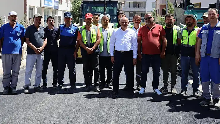 Yapılan asfaltlama çalışmalarını yerinde inceleyen ve çalışan personellere tatlı ikramında