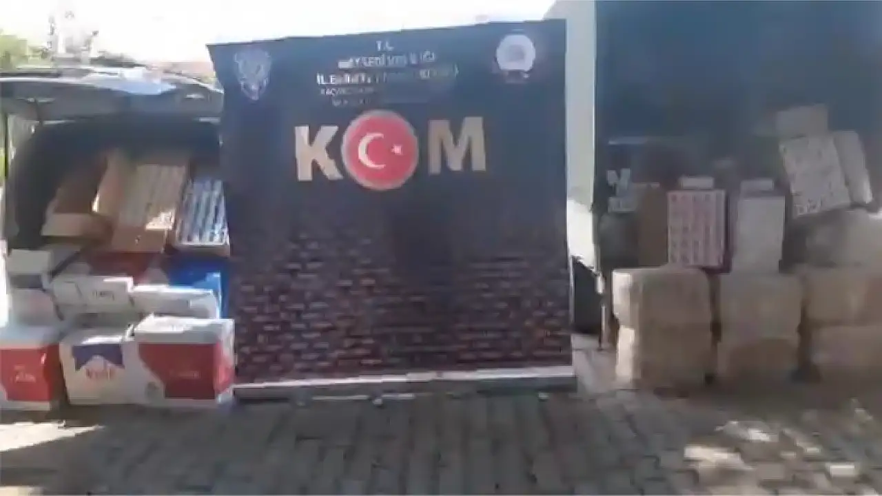 KAYSERİ (1HA)- Kayseri'de polis ekiplerinin yaptığı baskın sonucunda bir depodan yüklü miktarda kaçak tütün ve sigara kitleri ele geçirildi.Kayseri İl Emniyet Müdürlüğü'ne bağlı Kaçakçılık ve Organize Suçlarla Mücadele Şube Müdürlüğü Kaçakçılık Büro Amirl