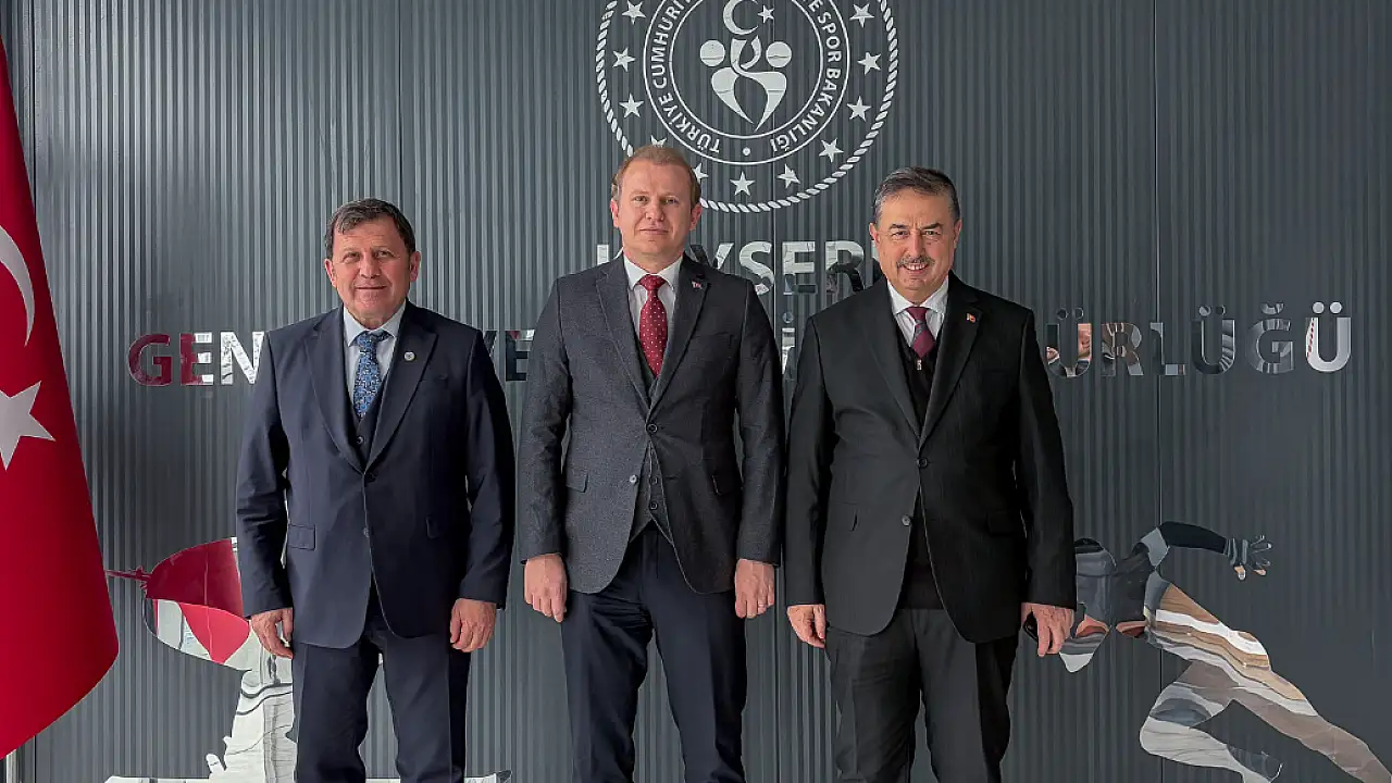 Yeşilhisar Kaymakamı Fatih Adıgüzel ve Belediye Başkanı Halit Taşyapan, Gençlik ve Spor İl Müdürü Ali İhsan Kabakcı'yı ziyaret ederek ilçedeki sportif faaliyetleri değerlendirdi.