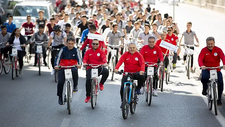 Başkan Büyükkılıç ve beraberindekiler, etkinlik kapsamında 2 kilometre boyunca 300’ü aşkın öğrenci ile birlikte pedal çevirdi.