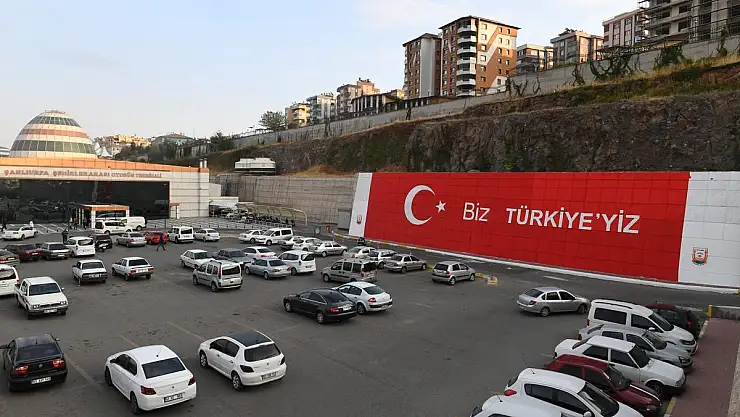Büyükşehir Belediye Başkanı Zeynel Abidin Beyazgül'ün talimatı ile şehirler arası otobüs terminalinin araç giriş bölümüne yapılan 'Biz Türkiye'yiz' sloganlı Türk Bayrağı çalışması vatandaşlardan tam not aldı.Şanlıurfa'da daha önce de şehrin bir çok noktas