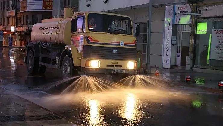 Gece ve gündüz devam eden temizlik çalışmaları inceleyen ve çalışmaları koordine eden Melikgazi Belediye Başkanı Dr. Mustafa Palancıoğlu, “Melikgazi Belediyesi Temizlik İşleri Müdürlüğü bünyesinde yer alan 400’den fazla ekip, 9 su tankeri, 9 ilaçlama aracı, 25 dezenfekte aracımız ile tüm ilçemizi fırsattan istifade temizledik. Sokak temizleme çalışmalarımız 1 Nisan tarihinden beri 12 gündür yoğun bir şekilde devam ediyor. Sokağa çıkma yasağının açıklanmasından sonra çarşıların, cadde ve sokakların boşalmasını fırsat bilip, ilçemizi baştan sona temizledik. Tacettin Veli ve Cami Kebir Mahallesinden başlayarak çarşı genelinde ve ilçenin genelinde temizlik ve dezenfekte çalışması yaptık. Bir taraftan da sivrisinekle mücadele için larva ilaçlaması yapıyoruz. Yoğun kullanılan banklar, ATM'ler, cami WC'leri, çöp konteynırları, dezenfekte edilerek vatandaşlarımızın kullanımına hazırlanıyor. Lütfen pazartesi günü de sanki sokağa çıkma yasağı varmış gibi çalışanlar dışında herkes evinde kalsın. Bizler belediyeler olarak tüm tedbirleri alıyor, sizler için çalışıyoruz. Vatandaşlarımıza evde kal çağrısını tekrarlıyoruz. Her şey halkımızın güvenliği ve sağlığı için. Melikgazi Belediyesi 7 gün 24 saat vatandaşının hizmetkarıdır. Ekiplerimiz akşam 19.00’dan sabah saat 08.00’e kadar sokakları temizledi. Halkımızın sağlığı için gece gündüz demeden ilaçlama ve temizlik çalışması yapan çalışkan ve özverili mesai arkadaşlarıma emekleri için teşekkür ederim.” dedi.