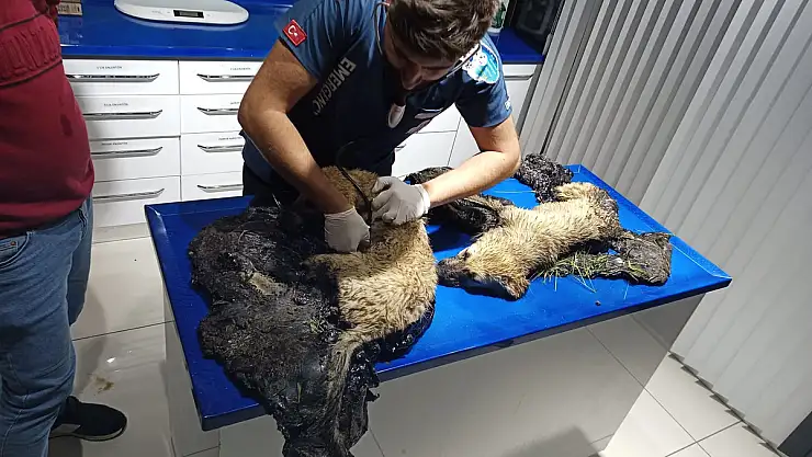 Zifte saplanan yavru köpekleri belediye ekipleri kurtardı